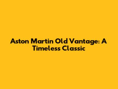 Aston Martin Old Vantage: A Timeless Classic
