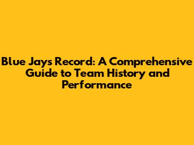 Blue Jays Record: A Comprehensive Guide