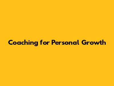 Coaching For Personal Growth