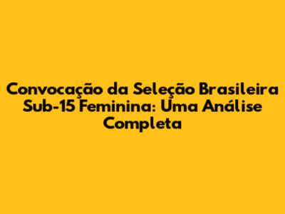 Convocação Da Seleção Brasileira Sub-15 Feminina: Detalhes E Expectativas