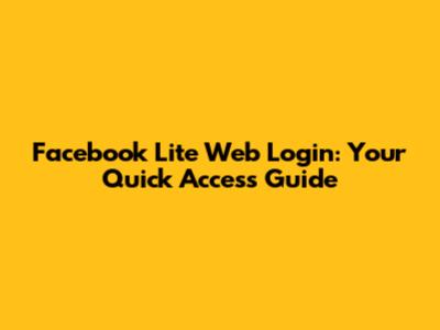 Facebook Lite Web Login: Quick Access Guide