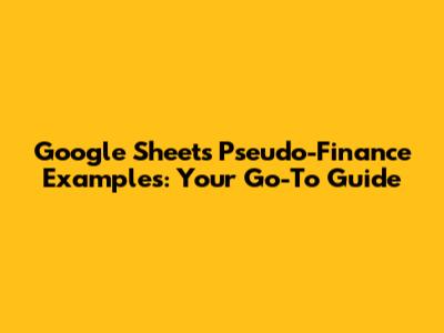 Hey guys, ever found yourself needing to whip up some quick financial models or simulations but didn't want to dive into complex software? Well, you're in luck! Google Sheets pseudo-finance examples are total game-changers. They let you create pretty realistic financial scenarios right in your browser, no fancy installations needed. Think of it as building your own mini-financial universe. We're talking about everything from simple budget trackers to more intricate investment simulations. The beauty of using Google Sheets for this is its accessibility and collaborative nature. You can easily share your sheets with colleagues, friends, or clients, and work on them together in real-time. Plus, with tons of built-in functions and the ability to create custom formulas, the possibilities are practically endless. Whether you're a student trying to grasp financial concepts, a small business owner looking to forecast sales, or just someone curious about personal finance, these pseudo-finance examples will arm you with the tools you need. We'll explore how to set up these models, the key formulas to use, and some practical applications that will make you feel like a finance wizard. So, buckle up, because we're about to unlock the power of Google Sheets for your financial modeling needs!