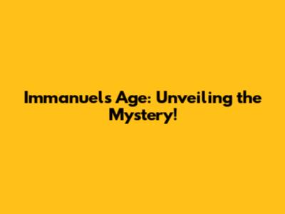 Immanuel's Age: Unveiling The Mystery!