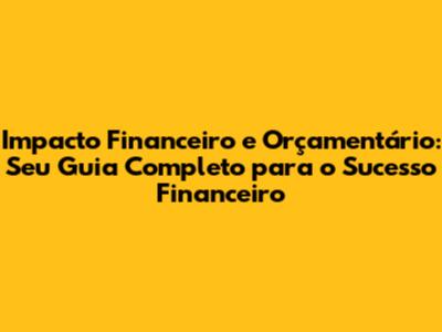 Impacto Financeiro E Orçamentário: Guia Completo Para Sucesso