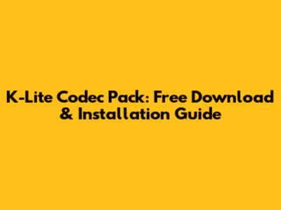 K-Lite Codec Pack: Free Download & Installation Guide