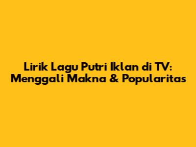 Lirik Lagu Putri Iklan Di TV: Menggali Makna & Popularitas
