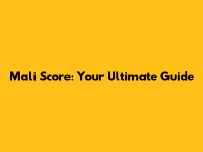 Mali Score: Your Ultimate Guide