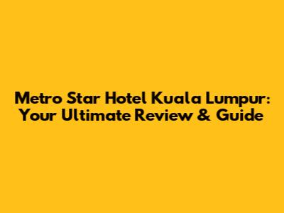 Metro Star Hotel Kuala Lumpur: Honest Review & Guide