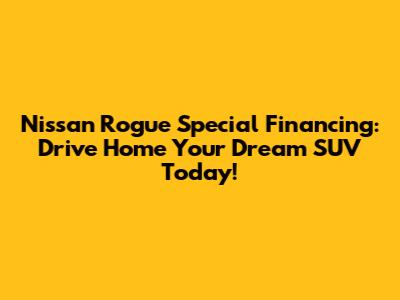 Hey guys! Are you on the lookout for a fantastic deal on a new Nissan Rogue? You've come to the right place! We're diving deep into the world of Nissan Rogue special financing options, because let's be honest, getting behind the wheel of a stylish and practical SUV shouldn't break the bank. Whether you're a first-time car buyer, looking to upgrade your current ride, or just hunting for the best possible deal, understanding the financing landscape is key. Special financing offers are basically like a golden ticket, allowing you to snag that gorgeous Rogue with potentially lower interest rates, flexible payment plans, or even special lease deals. Nissan often rolls out these attractive incentives to make their popular models, like the incredibly versatile Rogue, even more accessible to a wider range of buyers. So, buckle up as we explore how you can take advantage of these opportunities and drive away in your new Nissan Rogue with a smile and a financing plan that works for you. We'll cover what these deals typically entail, where to find them, and some tips to help you secure the best possible terms. Get ready to turn that dream Rogue into a reality!