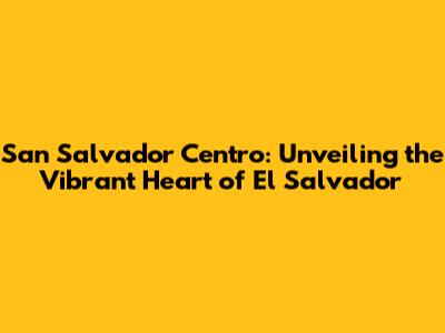 San Salvador Centro: Your Ultimate Guide To The City's Core