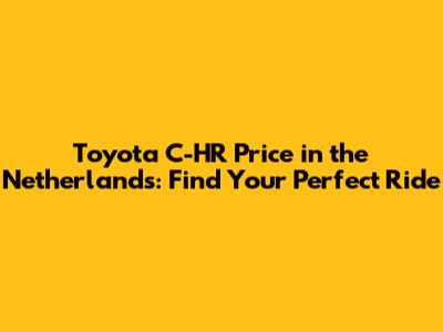 Toyota C-HR Price In The Netherlands: Find Your Perfect Ride