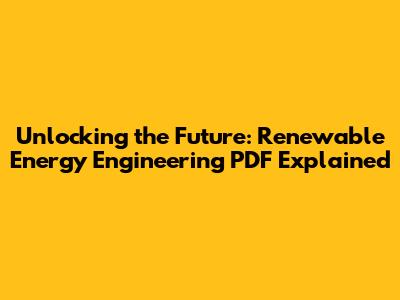Unlocking The Future: Renewable Energy Engineering PDF Explained